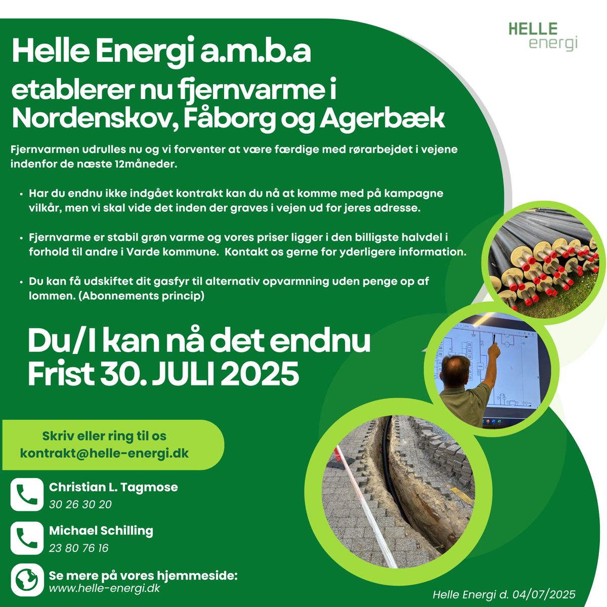 Er du allerede tilmeldt fjernvarme med underskrevet kontrakt er næste step at vores entreprenør kontakter jer når grave arbejdet startes op.